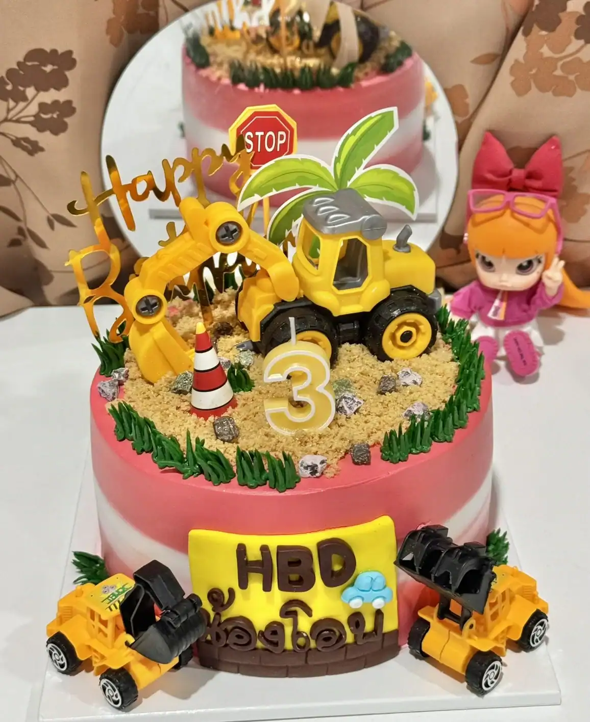 เค้กวันเกิดดีไซน์สุดอลังการสำหรับแฟนคลับรถก่อสร้างโดยเฉพาะ สร้างสรรค์จากวัตถุดิบคุณภาพพรีเมียม ทั้งช็อกโกแลตแท้, ครีมชีสสด, และเนยแท้ ทุกองค์ประกอบบนเค้กสามารถรับประทานได้และออกแบบมาอย่างสมจริงเพื่อสร้างความสุขและรอยยิ้มให้กับเด็กๆ ในวันพิเศษ