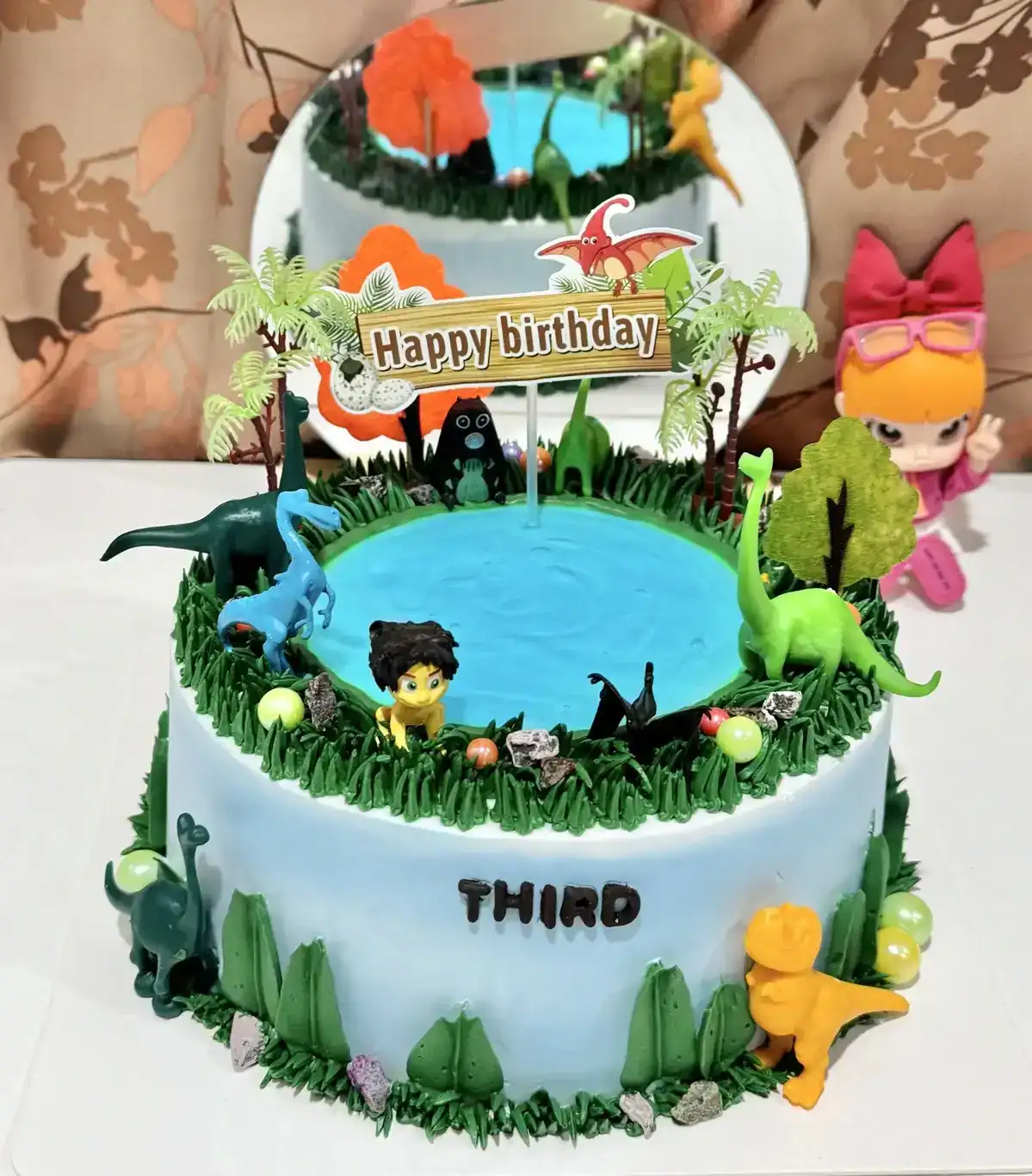 4. เค้กสองชั้นธีมป่าจูราสสิค
