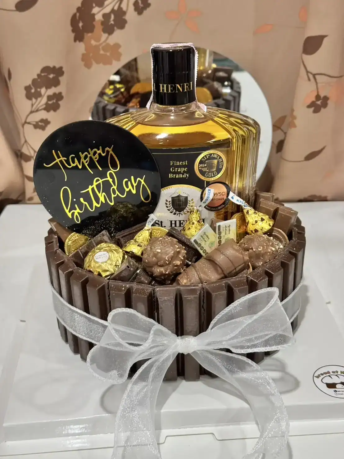 เค้กเหล้าเซนต์เฮนรี่ เค้กที่เหมาะสำหรับสายนักดื่ม เค้กขวดเหล้า เนื้อเค้กดี ที่ทำจากช็อกโกแลตที่เข้มข้น ใช้วิปครีมสด นุ่ม ไม่หวาน ละลายในปาก ที่กินแล้วเข้ากันกับรสชาติของเหล้าเป็นที่สุด