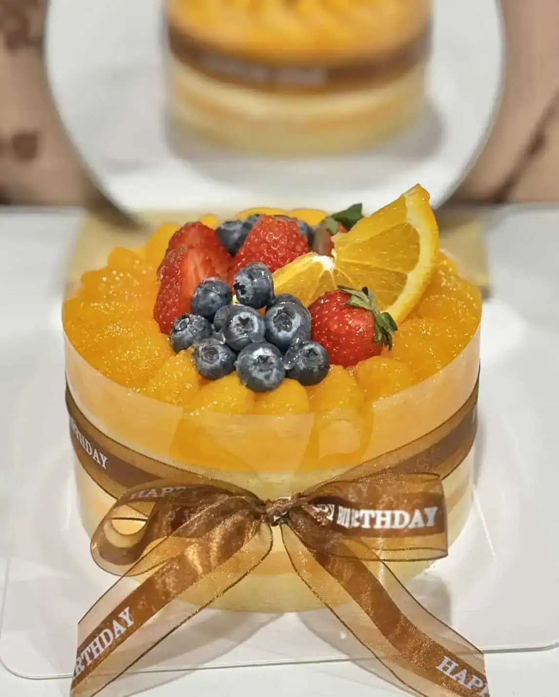 A: เค้กส้มซิกเนเจอร์ของเราใช้ส้มสดพรีเมียมที่คัดสรรเป็นพิเศษ พร้อมสูตรลับเฉพาะร้านที่ให้ความสมดุลของรสหวาน เปรี้ยว และหอม ผสมกับเทคนิคการอบที่พิถีพิถันและการตกแต่งระดับมืออาชีพ ทำให้ได้รสชาติและรูปลักษณ์ที่โดดเด่นกว่าเค้กส้มทั่วไป